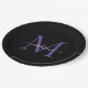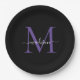 Black Purple Violet Monogram Modern Elegant Script Paper Plates