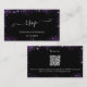 A black background decorated with purple faux glitter, sparkles. Personalize and add your names, wedding website url for your own QR code and text.