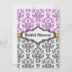 Black purple yellow damask wedding bridal shower invitation