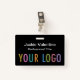 Personalize our professional PVC plastic name badge with your company logo, employee name, job title, or other custom text. Available with a lanyard, metal clip, or retractable reel. Designed in black and other colors with a modern minimalist design by MISOOK. All colors are customizable. The dimensions are 3.38 inch x 2.13 inch. No minimum order quantity and no setup fee.