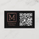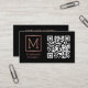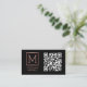 This business card features a modern elegant faux rose gold monogram design on a black background with QR code on the front. Personalize it with your own text.