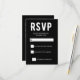 Black "til death" wedding RSVP card with 3 meal choices and a QR code on the back so your guests can also respond online on your own website or via email. The example shows an option for meat, fish, and vegan menus but it can be fully personalized with your own text.