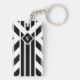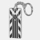 Black Quadrilateral Stripes on White with Monogram Keychain