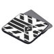 Striking black and white geometric pattern features black quadrilaterals aligned in stripes. The parallelograms angle towards a black diamond outlined with white in the upper third of the image. The diamond contains a customizable monogram. Three bold black stripes extend from the bottom of the diamond to the base of the vertical design.