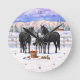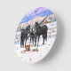 Black Quarter Horses In Snow Round Clock