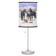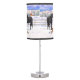 The lamp looks exactly like the picture, bright and colorful. The lamp shade is plastic not what I expected, however I love it! The printing is clear and the name can easily be read.