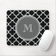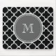 Black Quatrefoil Pattern, Gray Monogram Mouse Pad