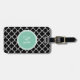 Black Quatrefoil Pattern, Mint Green Monogram Luggage Tag