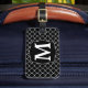 Black Quatrefoil White Monogram Luggage Tag
