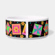 Show your love of quilting when you feed your dog with this pet food dish. Original quilt art combines favorite quilt blocks plus unique blocks in vibrant and dynamic colors on a black background. Customizable.