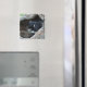 Adorable black and white bunny poking it's head out of the hollow of a tree.