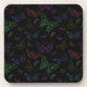 Black & Rainbow Colored Butterflies Flying Beverage Coaster