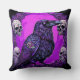 Black Raven and Skulls Throw Pillow