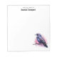 A notepad with an image of a black crow with purple pink wings. A pink watercolor splatter behind this lovely mystical bird.