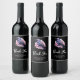 Bottle labels with an image of a black crow with purple pink wings. A pink watercolor splatter behind this lovely mystical bird.