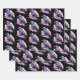 Wrapping paper sheets with an image of a black crow with purple pink wings. A pink watercolor splatter behind this lovely mystical bird.