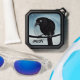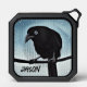 Portable Bluetooth speaker, with cartoon style graphics of a black raven, on a blue background. Personalize the name to suit your needs.