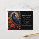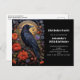 Birthday party postcard invitation with a black crow perched on a branch surrounded by red flowers. Cool gothic vibe.