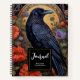 Spiral notebook with a black crow perched on a branch surrounded by red flowers. Cool gothic vibe.