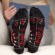 This fun Halloween socks are bright and colorful. The small print is crisp and shows the fun details. The softness of the socks feels nice on my feet and ankles. .