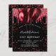 For an elegant 21st (or any age) birthday. A stylish black background. Decorated with red faux glitter and balloons. Personalize and add a name, age and party details. The name is written with a hand lettered style script