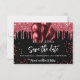 A girly and trendy Save the Date for a 18th (or any age) birthday party. A black background decorated with red faux glitter and balloons. Personalize and add a date and name/age. The text: Save the Date is written with a large trendy hand lettered style script.