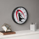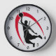 This is a great clock for a basketball fan! A dramatic black silhouetted basketball player in process of dunking the ball, with a bright red swirl design behind him. *Clip art used in this design is copyrighted by Encore Software, Inc., which permits use to its licensors. All rights reserved.
