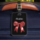 A black background, decorated with a large red bow on the front. Personalize and add your name on the front. Your contact information on the back.