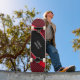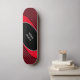 Black and red checkered pattern, red wavy lines with black center and calligraphy Skateboard.