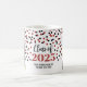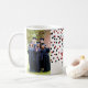 Customizable photo template class of 2025 graduation mug with black and red confetti pattern.