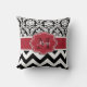 Show off your style in a fun way with this black and white with red accent chevron and damask personalized pillow.