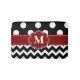 Show off your style in a fun way with this black and red polka dots and chevron monogram bathmat.