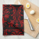 Black & Red Floral Swirls Damask 4 Monogram Kitchen Towel