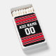 A sporty and manly pattern for the guys and boys in your family. This jersey design is perfect for anyone playing sports. It resembles a team jersey with stripes and a place to add your anme and number. You can use this as a Happy Birthday favor and include the number years old in the number area.