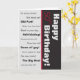 A funny birthday card that features a number of old age jokes and phrases. The words “Happy Birthday” run vertically along the right side of the card for a fun and modern feel. You can customize the age next to the greeting, as well as the message on the inside. Choose from four different color schemes: blue & orange, black & white, black & red, or the vintage brown, gray, and red.
