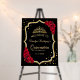 Black Red Gold Quinceanera Welcome Sign. Elegant desing featuring red roses, diamond tiara, faux glitter gold and typography script font. Glam sign perfect for a stylish princess style quinceanera celebration.