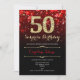 Black Red Gold Surprise 50th Birthday Invitation