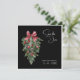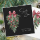 Black Red Green Festive Winter Wedding Save the Date Card. Announce your holiday season wedding with this festive winter Save the Date card, featuring a black background, pine foliage, red berries, and a blush pink bow. A romantic and elegant way to set the tone for your Christmas celebration. Ideal for formal or rustic winter weddings.