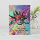 BLACK RED JESTER MASK Masquerade Party Blue Silver Invitation