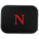 These black floor mats feature the monogram N in bright red. Both the front and back mats have the same image. Show your pride in Nebraska!
