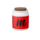 Black Red Monogram Initial Letter Modern Plain Candy Jar