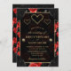 Black & Red Rose Pattern & Gold Diamonds Wedding Invitation