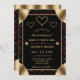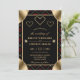 Black & Red Rose Pattern & Gold Diamonds Wedding Invitation