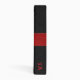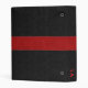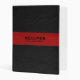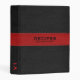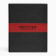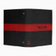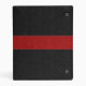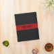 Image of a black and red stitched leather with customizable text on the spine and front.