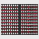 Christmas wrapping paper is shown in a black background with Red and white trees print.