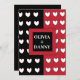 Black Red White Hearts Pattern Modern Wedding Invitation