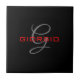 Black Red Your Name Initial Monogram Modern Ceramic Tile