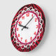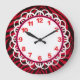 A beautiful clock for those who love animal prints . . . including those animal prints that are a little more unusual! A black and red zebra stripe print covers the base of the clock, while the white face is encompassed with colors that coordinate well with the print - red numbers, white lace, and hot pink/black border rings.