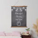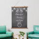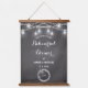 Black and White Rehearsal Dinner Welcome Sign Tapestry with Rustic String Lights and Mason Jars on Chalkboard/Blackboard. Check out our store collection below for more products with this design