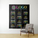 Promotional backdrop for your small business, perfect for conventions and conferences and similar events, personalized with a large wide logo at the top and a pattern of your logo and custom text filling the rest of the backdrop. Add your website and social media!